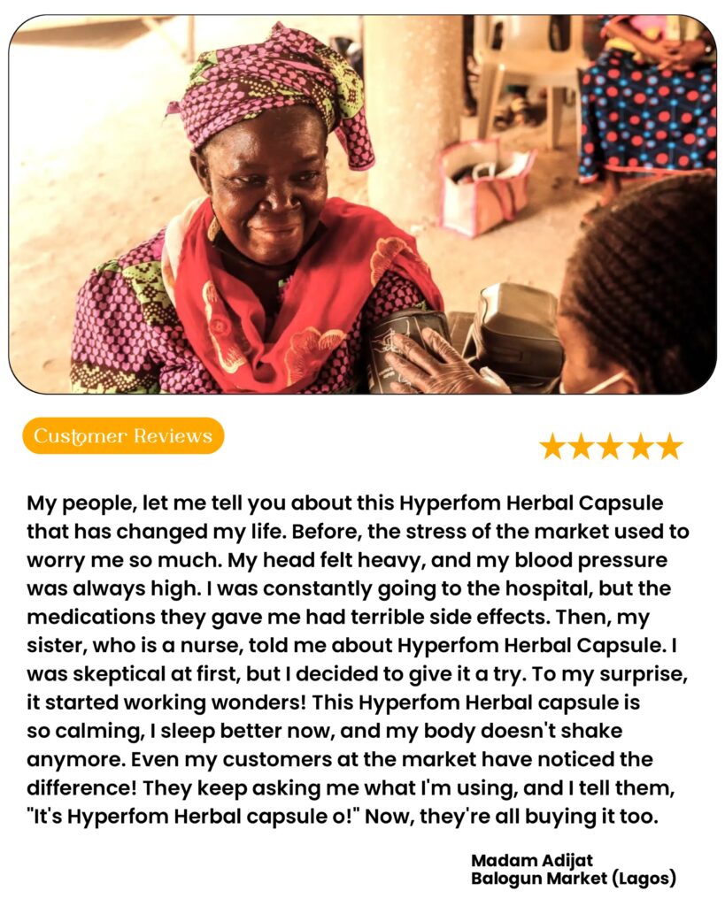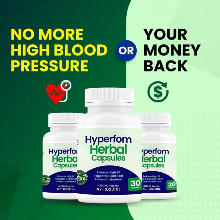 Hyperfom Herbal Capsules has the highest standard ofย NAFDACย Approved It is produced in the best, biggest and professional manufacturing factory.