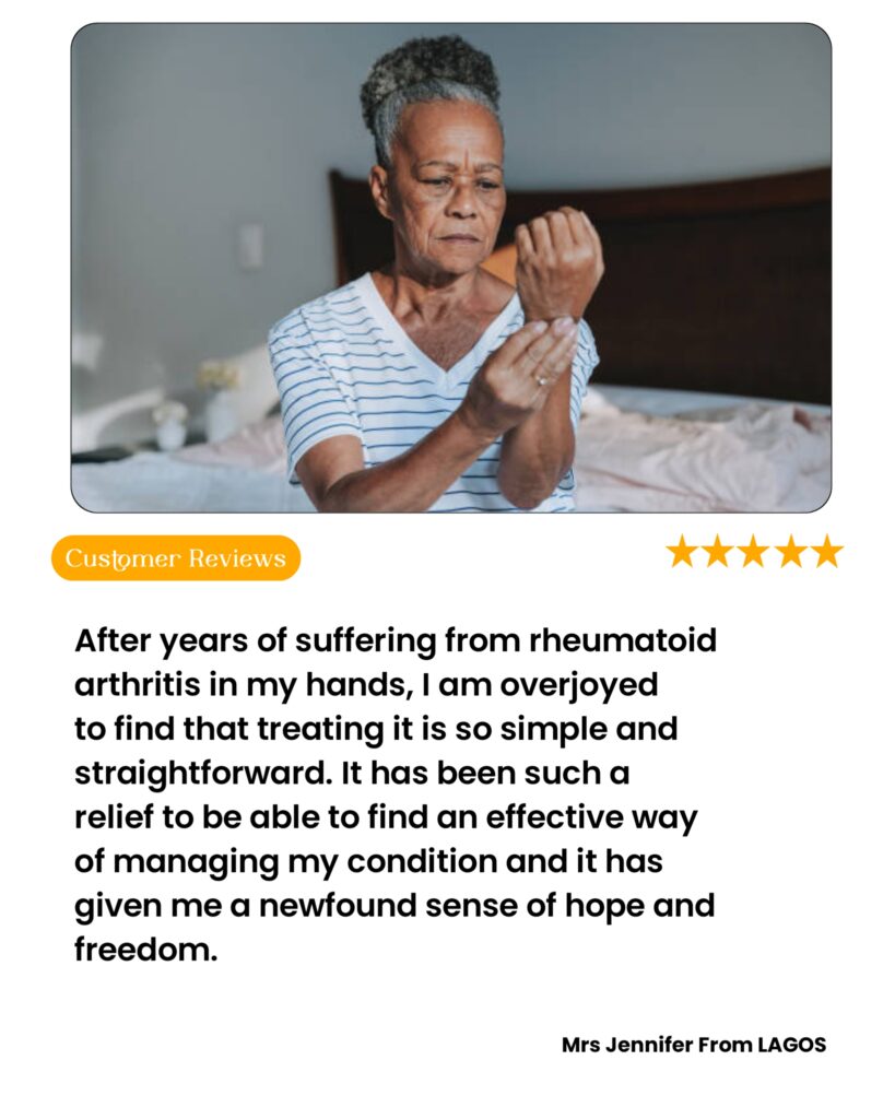 Now you can quickly and easily get rid of your arthritis, eliminate all the back pain, neck pain, knee painโฆ in just 20 days. Thanks to this revolutionary herbal solution.. Plus youโll save money by not having to visit the doctor nearly as often.. because youโll no longer need them.. Whatโs more? youโll be joining over 1,321 satisfied customers who are enjoying the benefits of using this product..