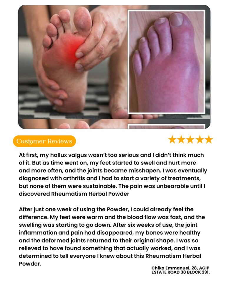 Are you ready to experience the transformative power of this Rheumatism Herbal Powderย to eradicate joint pains?