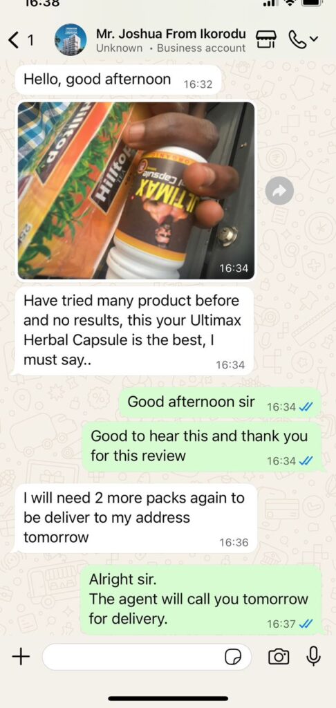 Ultimax Herbal Capsule is a safe, powerful, and effective herbal remedy designed to restore stamina, enhance libido, improve erection strength, and help you regain your confidence in the bedroom.